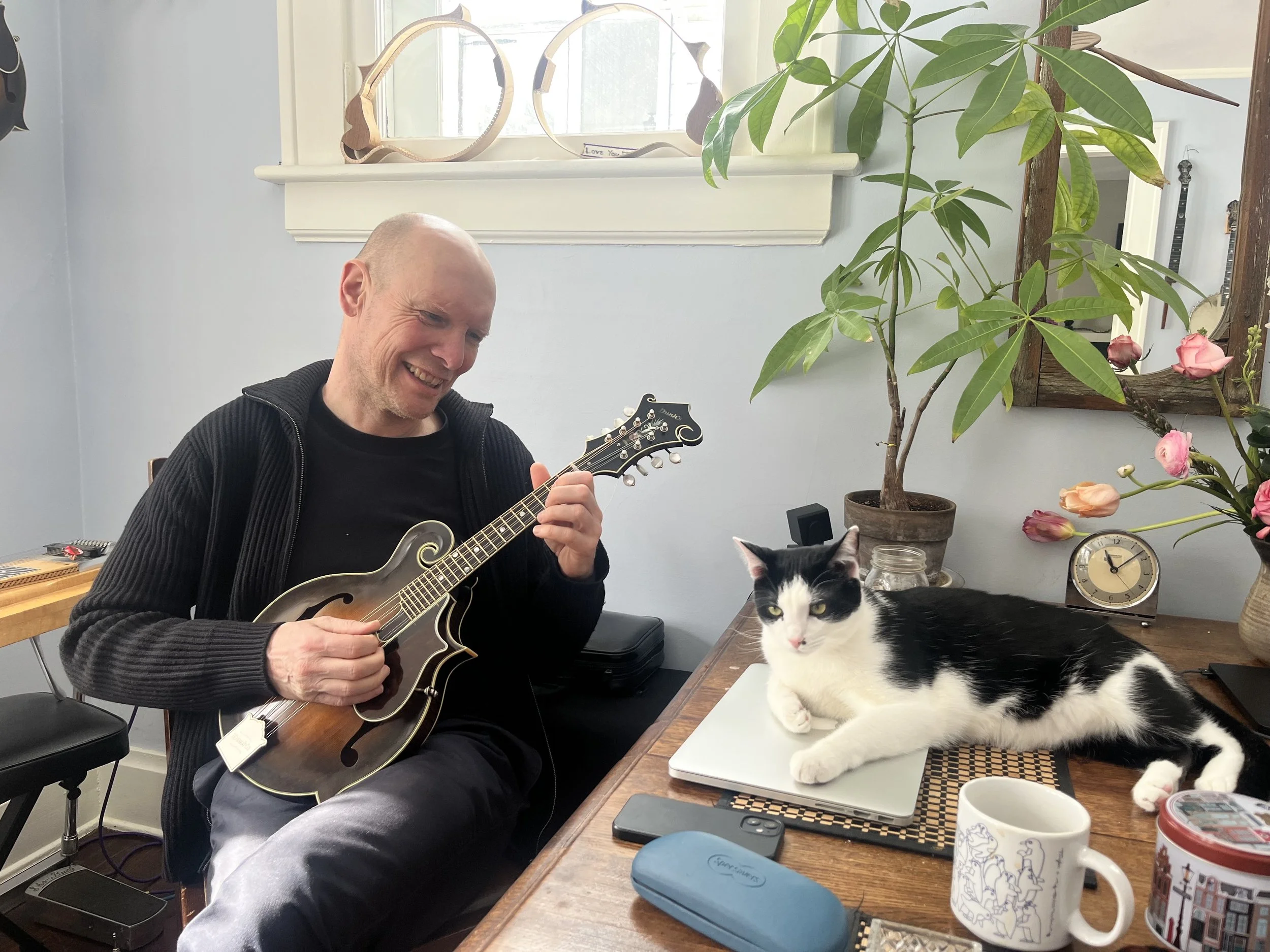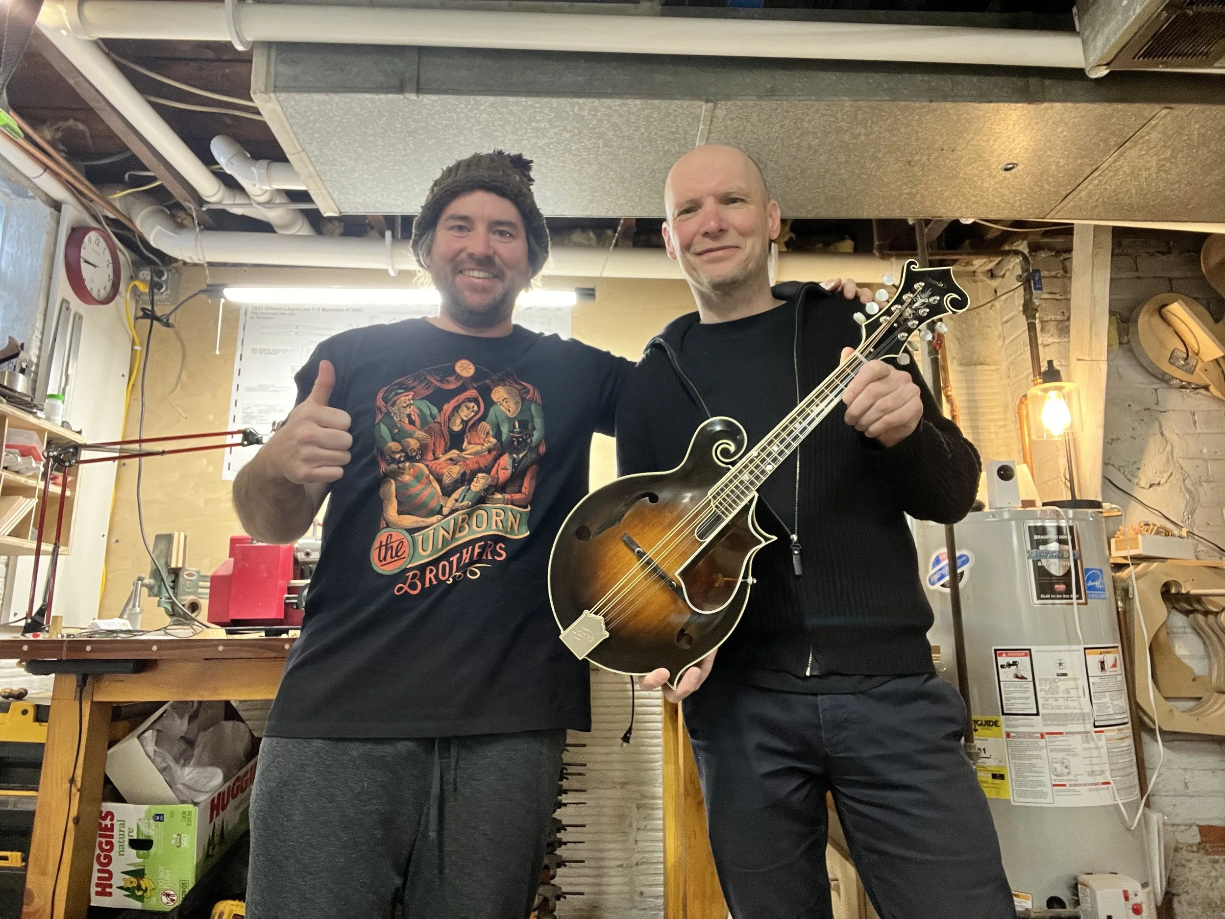 This mandolin now resides in Amsterdam, Netherlands with a wonderful guy named Flip Kneppers. He flew across the pond to pick up his new axe, and we had ball while he was here. Good times!